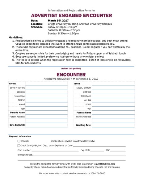 Adventist Engaged Encounter is a marriage preparation event that is held on twice a year on the campus of Andrews University. If you or someone you know is engaged or recently married, consider attending. The weekend intensive is hosted by a diverse group of Christian married couples that are committed to mentoring others with the goal of helping build strong, happy, loving marriages that will last.