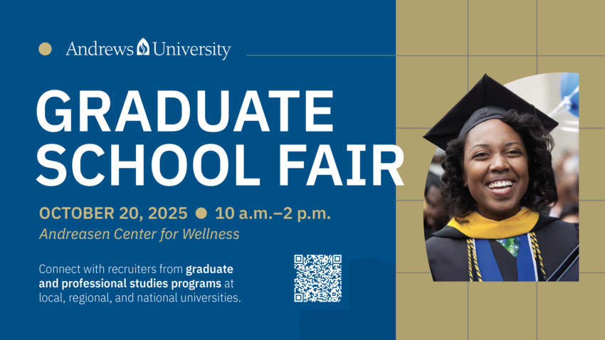 Andrews University is excited to host an upcoming graduate fair. The fair will take place on Monday, Oct. 20, 2025, from 10 a.m.–2 p.m. in the Andreasen Center for Wellness. This campus-wide event offers organizations and graduate programs the opportunity to recruit talented students for graduate, professional studies and other continuing education opportunities. Students from all majors are invited.
