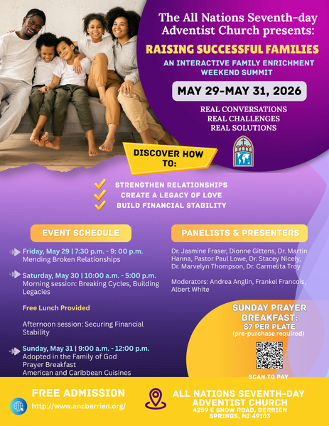 Join the All Nations Seventh-day Adventist Church from May 29–31 for an interactive Family Enrichment Weekend.