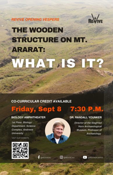 "The Wooden Structure on Mt. Ararat: What Is It?" Come and find out at the first Revive vespers of the year! When: Friday, Sept. 8, 2023, 7:30–9 p.m. Location: Biology Amphitheater (first...