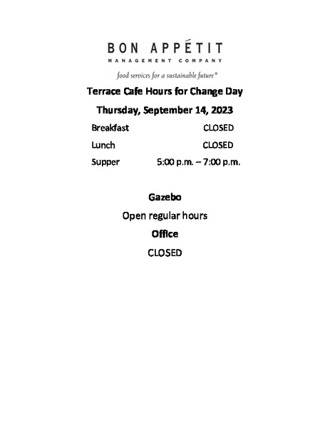 Please note the Dining Services hours for Change Day.