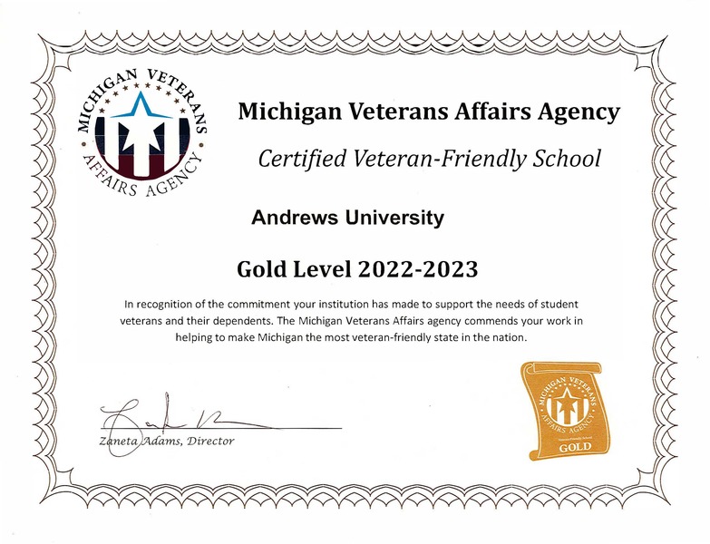 Andrews University has been awarded Gold-Level Veteran-Friendly Status with the Michigan Veterans Affairs Agency (MVAA). The designation marks Andrews' continued excellence in serving military-connected students across the state of Michigan and at military installations nationally as well as...