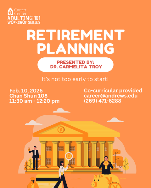 It’s never too early to plan for your future. Carmelita Troy, associate professor of accounting, will break down the basics of retirement planning, including Feb. 10, 2026, from 11:30 a.m.–12:20 p.m. in Chan Shun Hall, Room 108. It... read moreGreat Lakes Adventist Academy Vespers