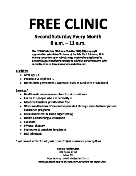 Tom Shepherd, DrPH, PhD, is the speaker at the Dowagiac Seventh-day Adventist Church on Sabbath, Dec. 10. Pastor Shepherd continues his series on the Gospel of Mark with a sermon from Mark 10 titled... read moreHERBIE Health Clinic: Free Care