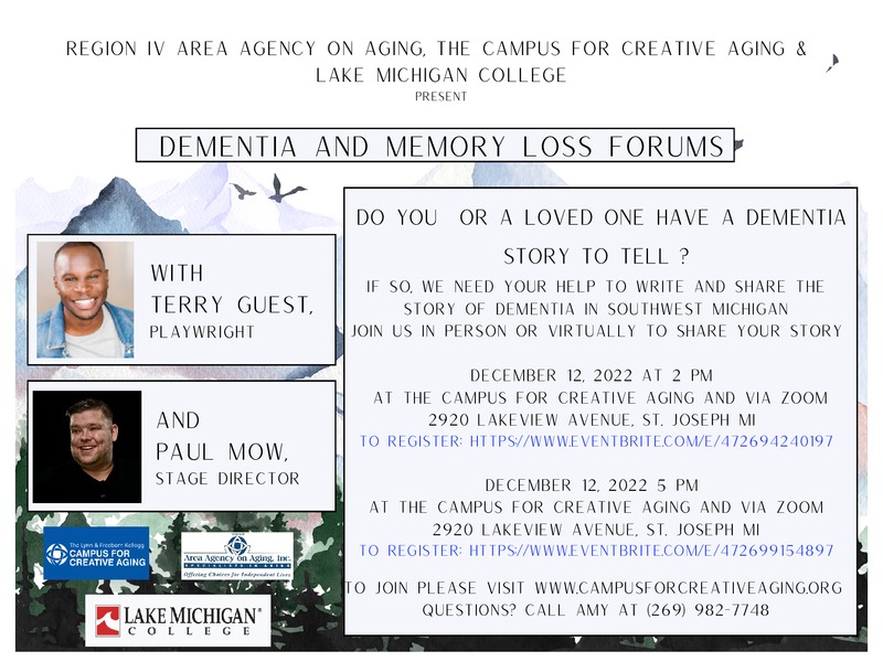 Do you or a loved one have a dementia story to tell? If so, we need your help! As a part of Dementia Friendly Community work, the Campus for Creative Aging and Region IV...