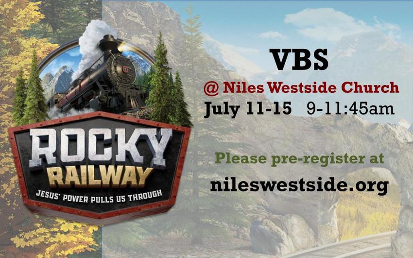 Rocky Railway VBS takes place July 11–15 from 9–11:45 a.m. at Niles Westside Adventist Church (1105 Grant St, Niles). Join us for Bible stories, crafts, games and more! Please pre-register ASAP at www.NilesWestside.org or by calling 269-683-5998. ...