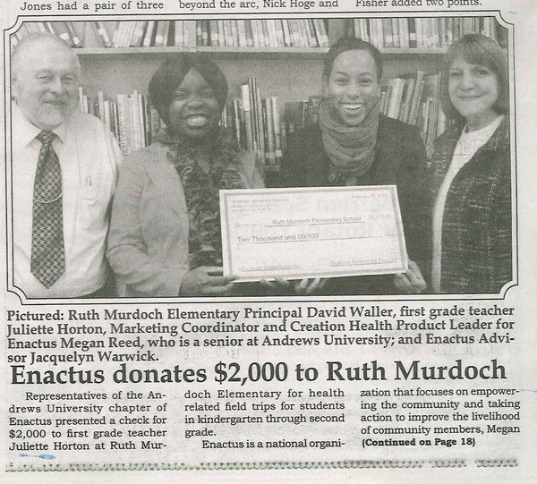 Enactus Donates $2,000 to Ruth Murdoch Elementary