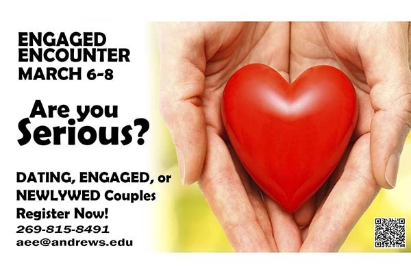 Andrews University will host Adventist Engaged Encounter (AEE) the weekend of March 6–8, 2020. AEE is an enrichment weekend for seriously dating, engaged and recently married couples. It offers insights and tools for couples to develop their relationship... read more