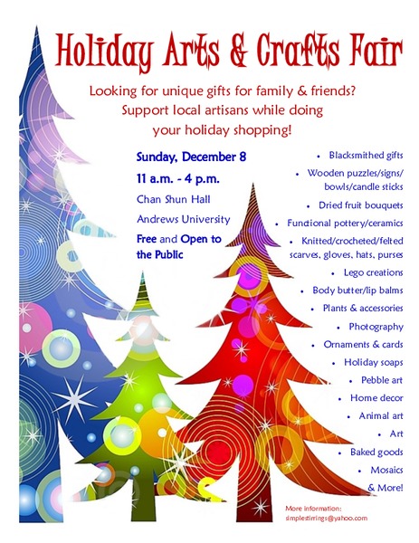Come shop for unique and handmade arts and crafts. There will be a large variety of items for sale: wooden puzzles, bowls, nativity scenes, candle sticks; blacksmithed gifts; functional pottery/ceramics; Lego creations; plants and accessories; ornaments and cards;...
