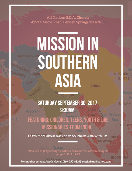 All Nations SDA Church invites you to join its 11:30 a.m. worship experience this Sabbath, September 2. Errol McLean will present the Word titled "Mission Is Possible". Our Bible study starts at 10 a.m.  ...