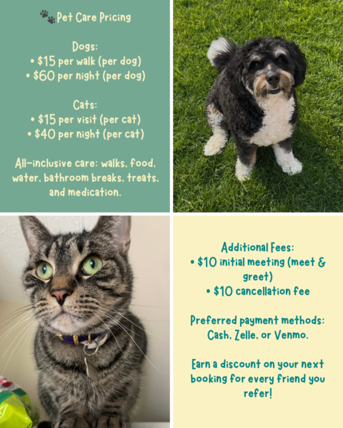 So many pawsitive changes! 💕 New name (Pet Sitting with Maxine & Friends), new motto, updated prices & fresh discounts! Keep an eye out for more — meet the team, new scheduling, website & contracts coming soon! 🐾 read more