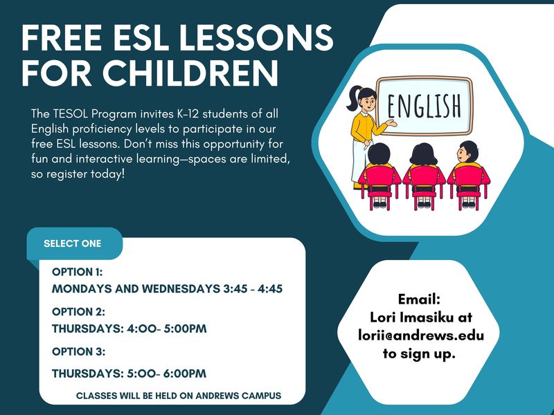 Please see the flyer below for available time options. This program is sponsored by the TESOL program and will be supervised by faculty. Please email Dr. Lori Imasiku if interested as soon as possible as... read more