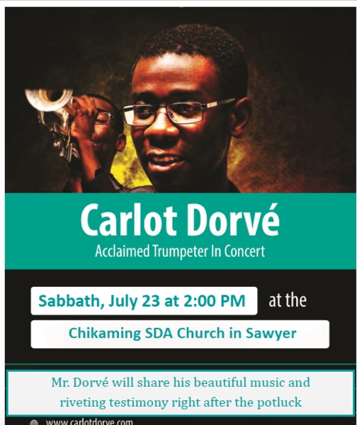 Chikaming Seventh-day Adventist Church 13083 Red Arrow Hwy Sawyer, MI 49125 Join us this Saturday afternoon, July 23 at 2 p.m. for a concert with acclaimed trumpeter, Carlot Devoré. ...
