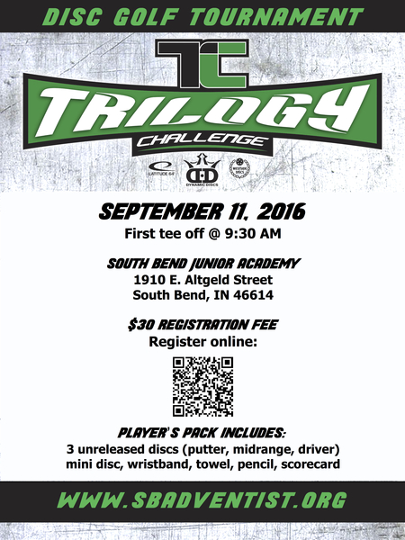 South Bend First SDA Church and South Bend Junior Academy will be hosting a Trilogy Challenge disc golf tournament on Sunday, Sept. 11, 2016 at 9:30 a.m. The cost is $30 per person. Each player will receive three... read moreVillage Church Services for August 6